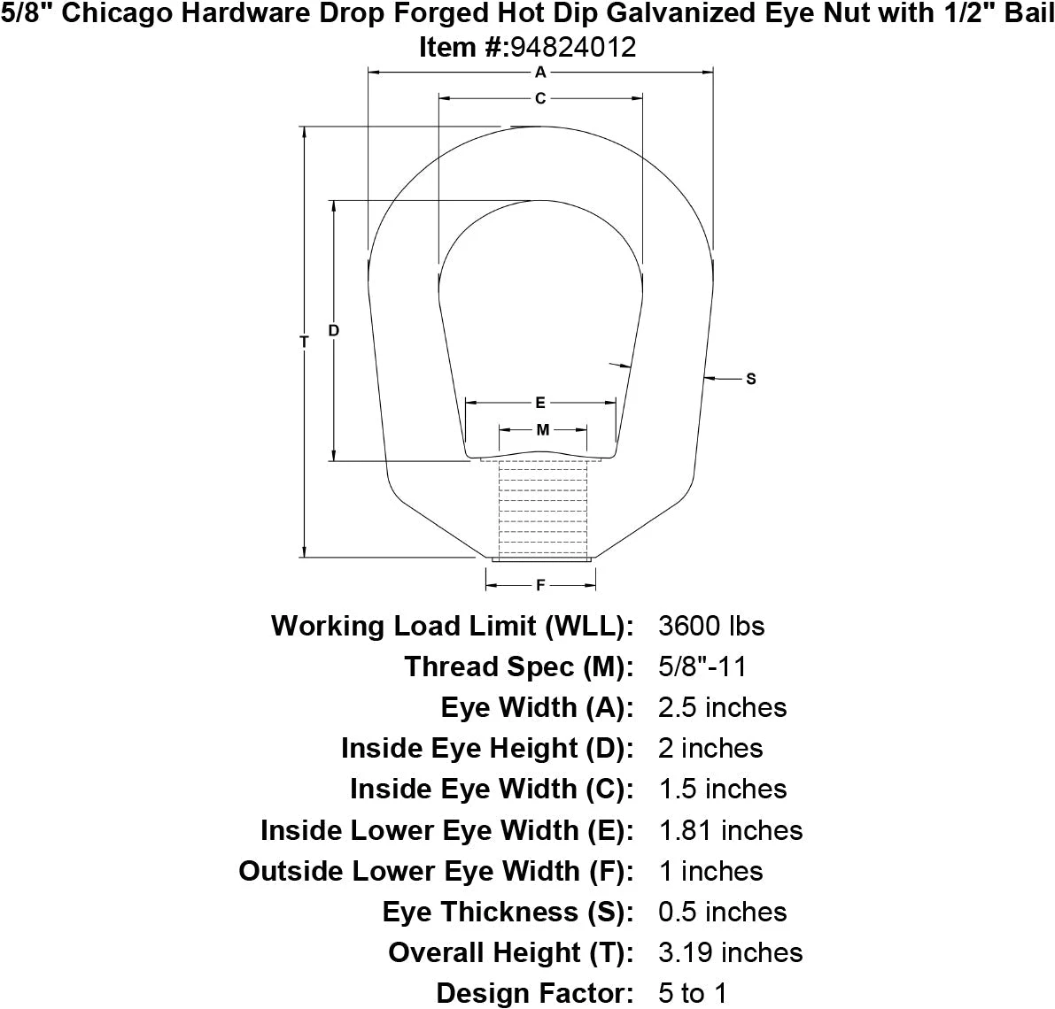 Chicago Hardware Drop Forged Hot Dip Galvanized Eye Nuts
